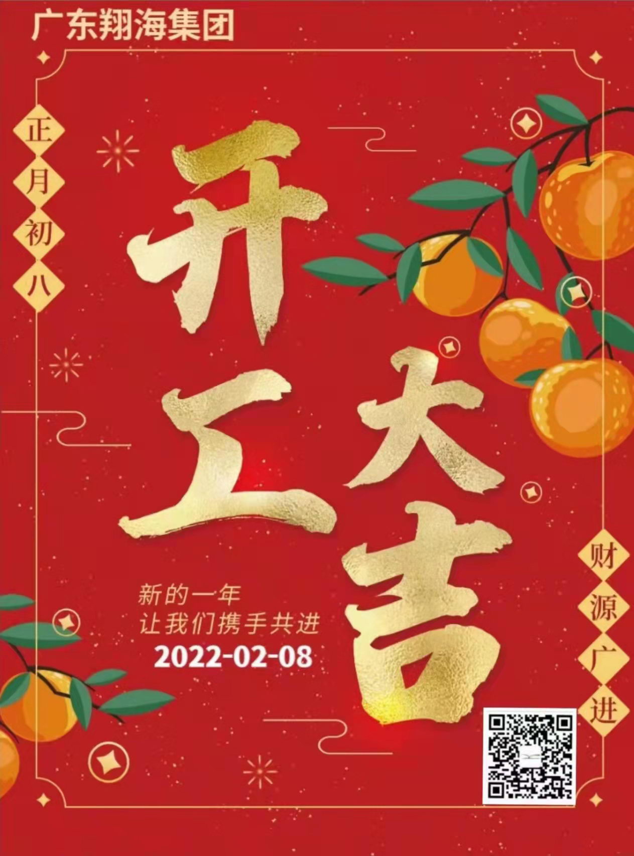 正月初八,广东翔海集团恭祝各界同仁开工大吉,万事如意,生意兴隆,财源广进!